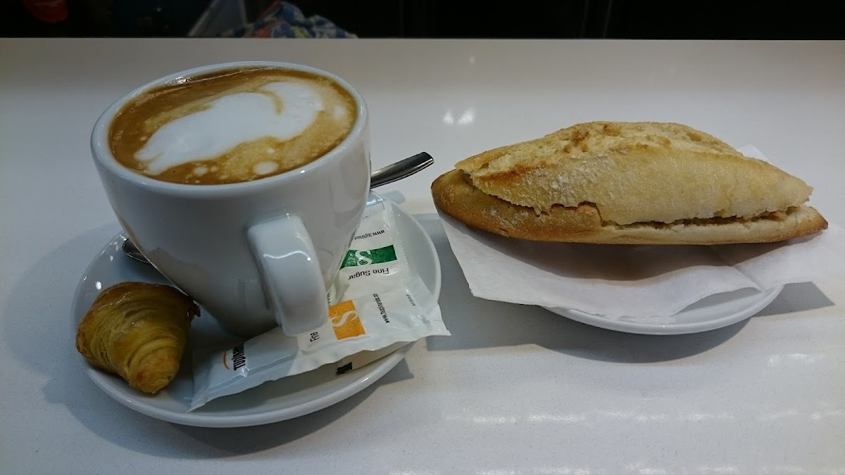 As you enter, the inviting aroma of freshly brewed coffee greets you, promising a flavorful start to your day. Customers rave about the exceptional coffee options available, particularly their super americano, perfectly paired with a giant croissant or one of their delightful chocolate creations—all available at an unbeatable price of just €3.70! It's a steal that showcases the café’s dedication to providing delicious food without breaking the bank.